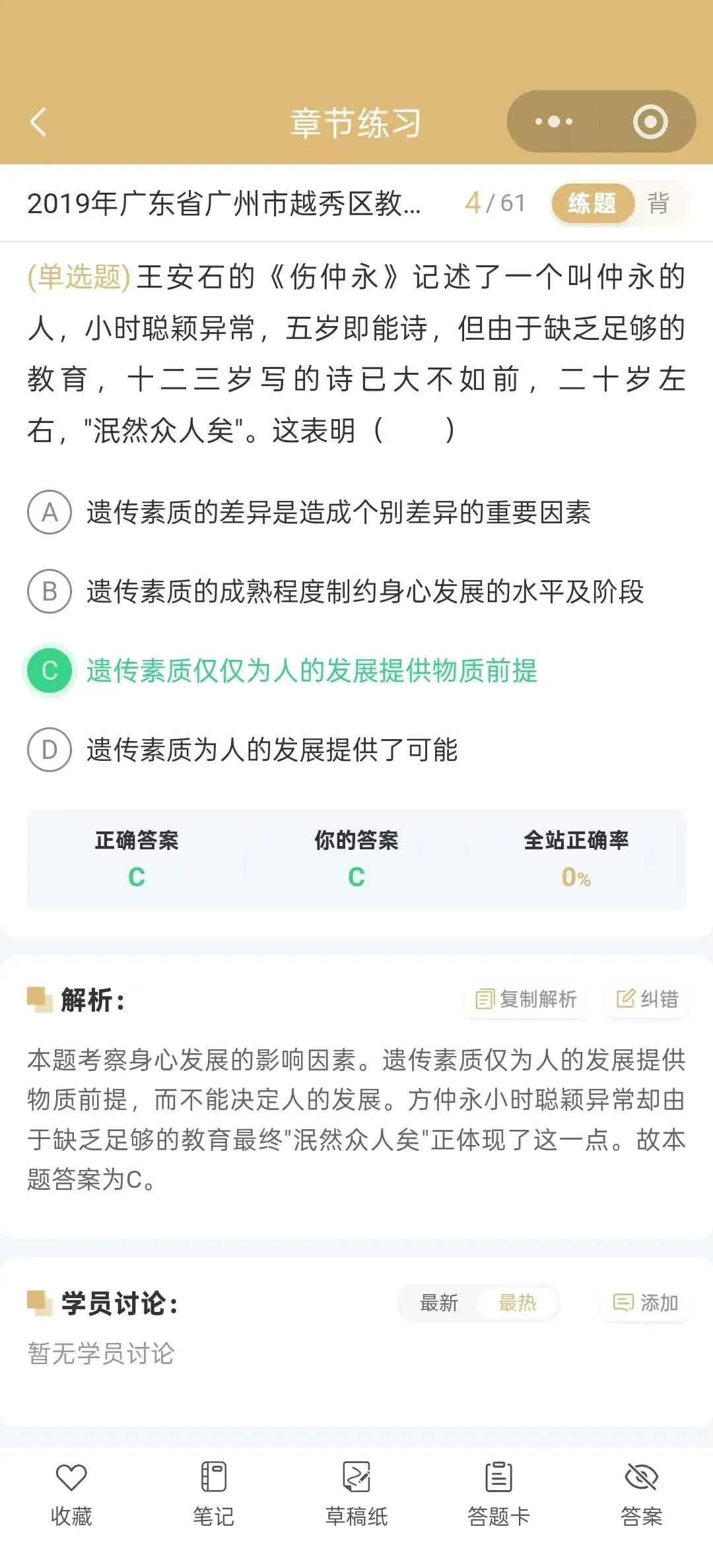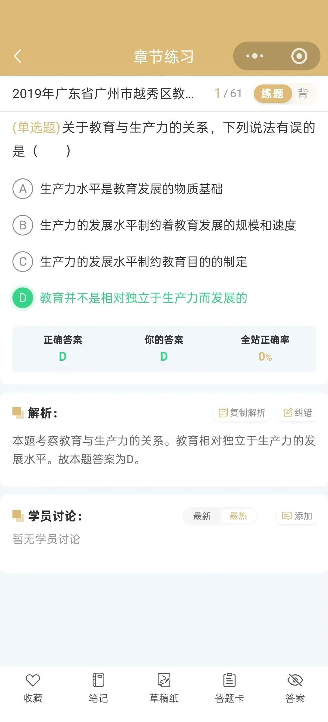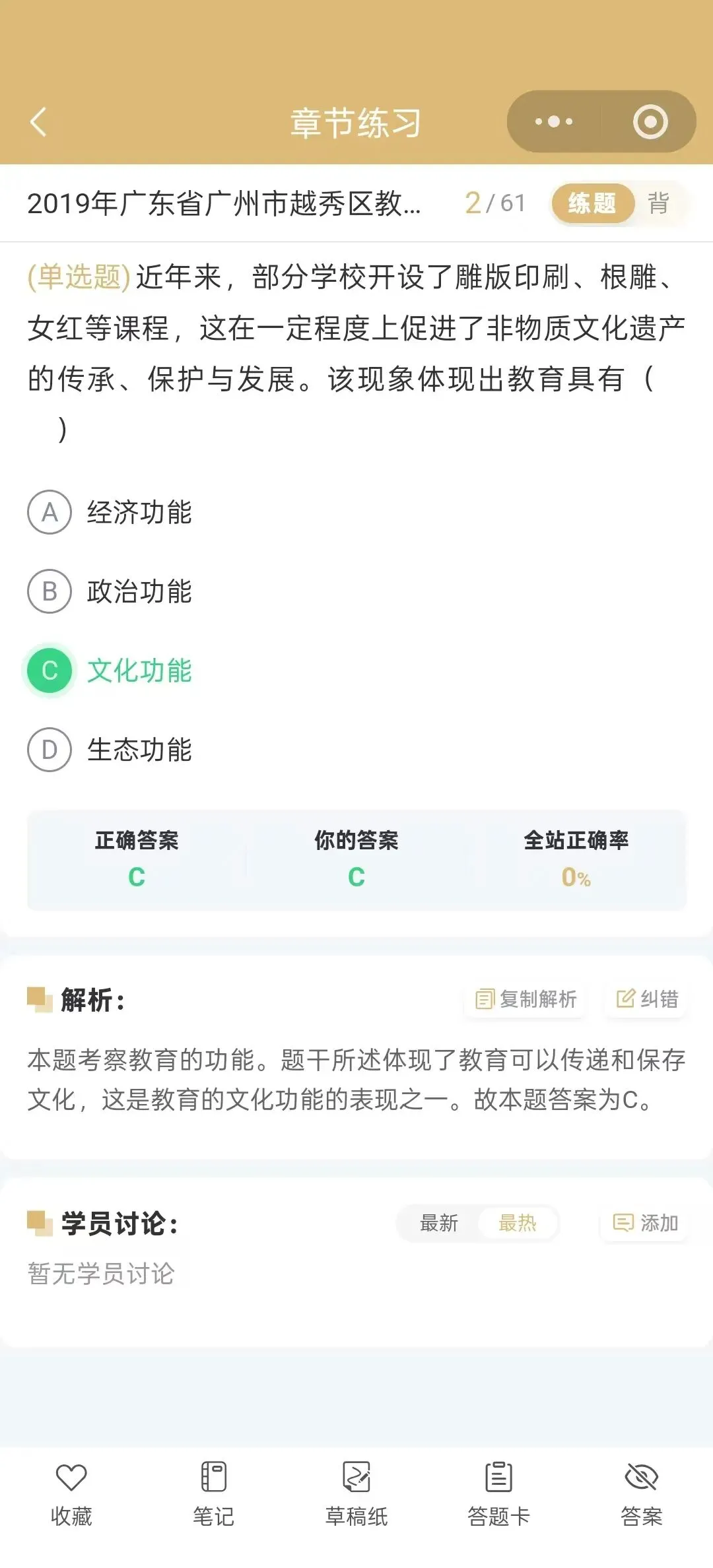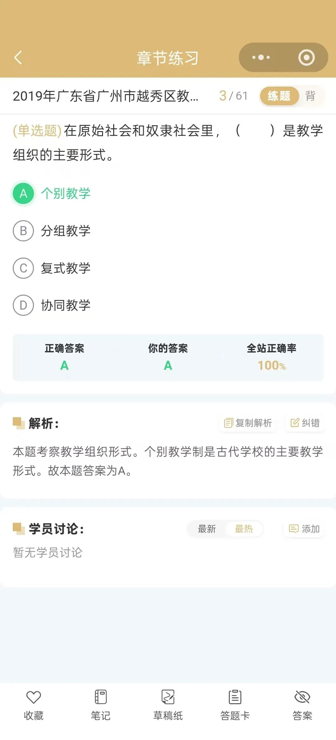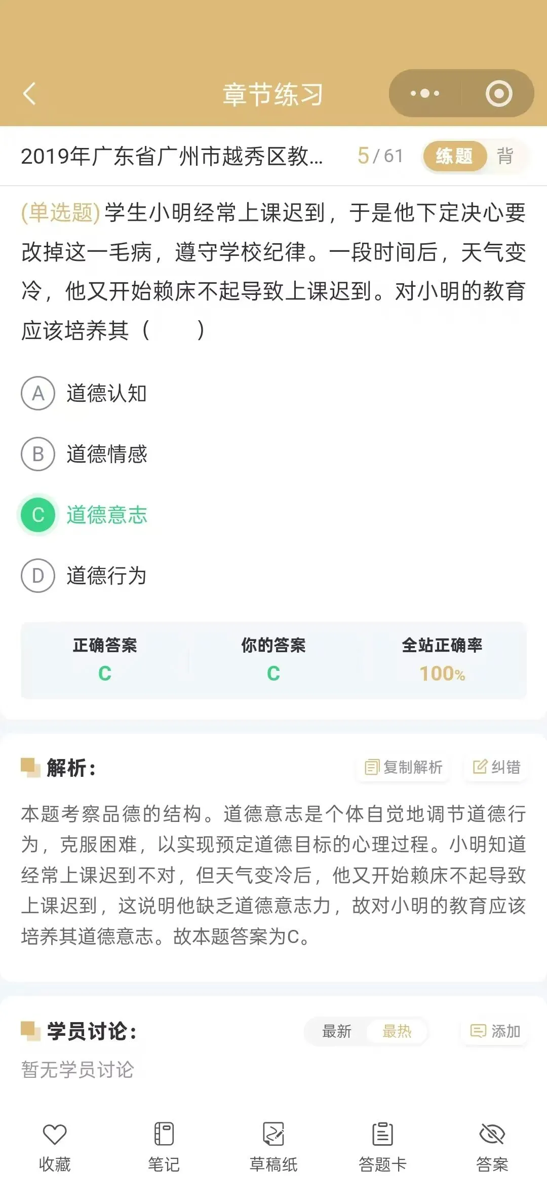 今天为大家介绍的是2019年广东省广州市越秀区教师招聘考试真题试卷(含答案解析);总题数:59道,其中单选题30道,多选题10道,判断题10道,填空题4道,简答题2道,辨析题1道,材料题2道,有需要备考广州越秀教师招聘的小伙伴们抓紧时间刷题吧!
