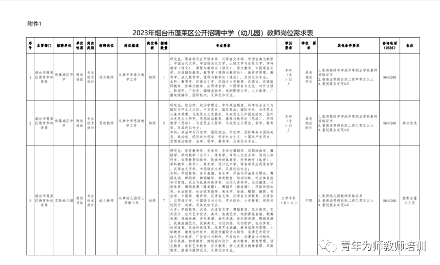 附件1:2023年烟台市蓬莱区公开招聘中学(幼儿园)教师岗位需求表.pdf