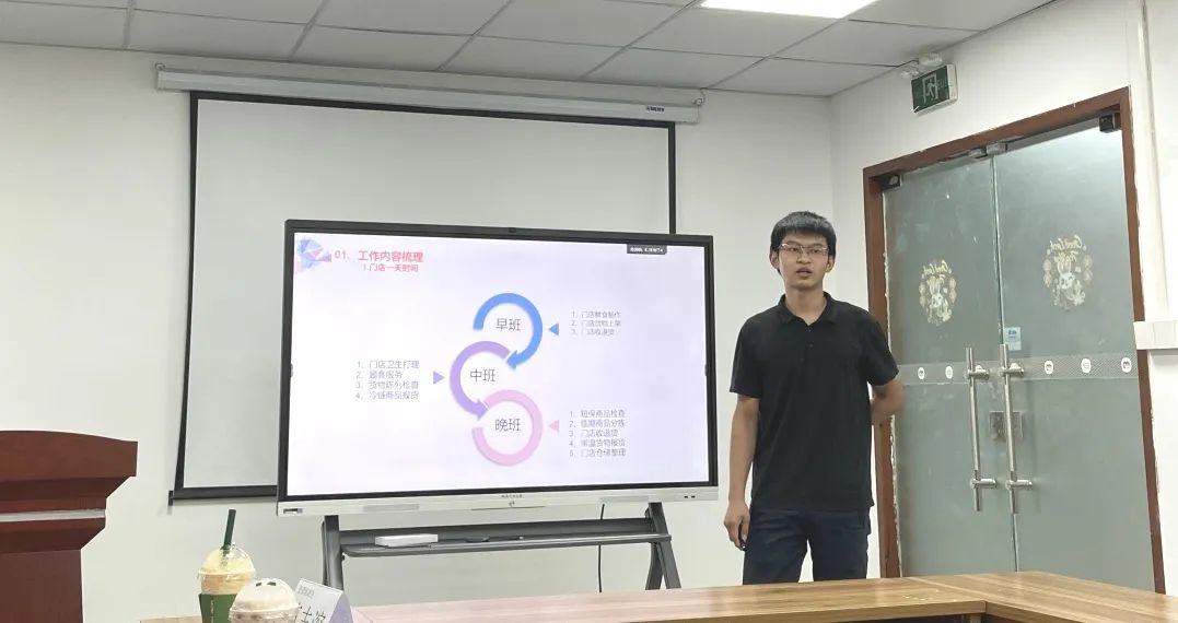 为了让管培生能够提前了解开业指导的相关工作内容和流程,邀请了建店支持组组长梁有乐进行开业指导的岗前培训,从开业前,开业中,开业后三个阶段给管培生梳理岗位职责和工作标准。