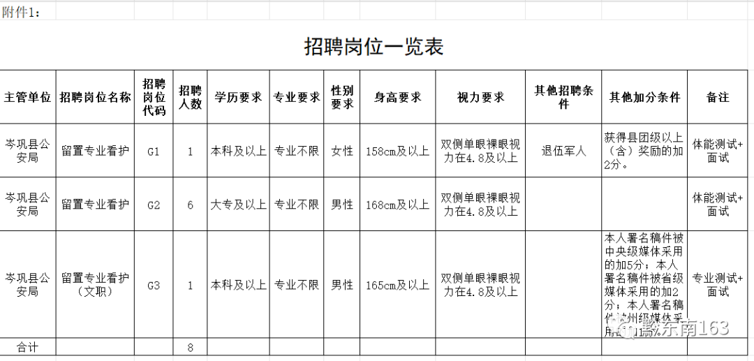 计划公开招聘留置专业看护人员8名,招聘岗位详见附件《招聘岗位一览表》。