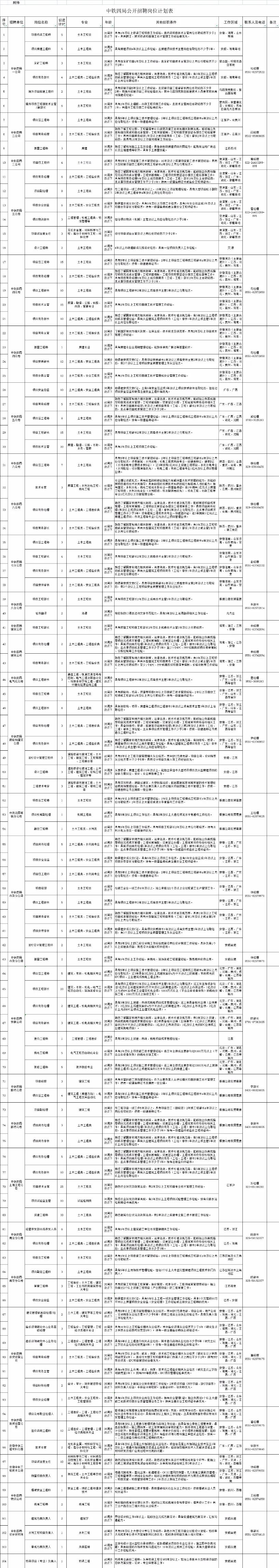 中铁四局所属各公司公开招聘岗位,见附件《中铁四局公开招聘岗位计划表》。