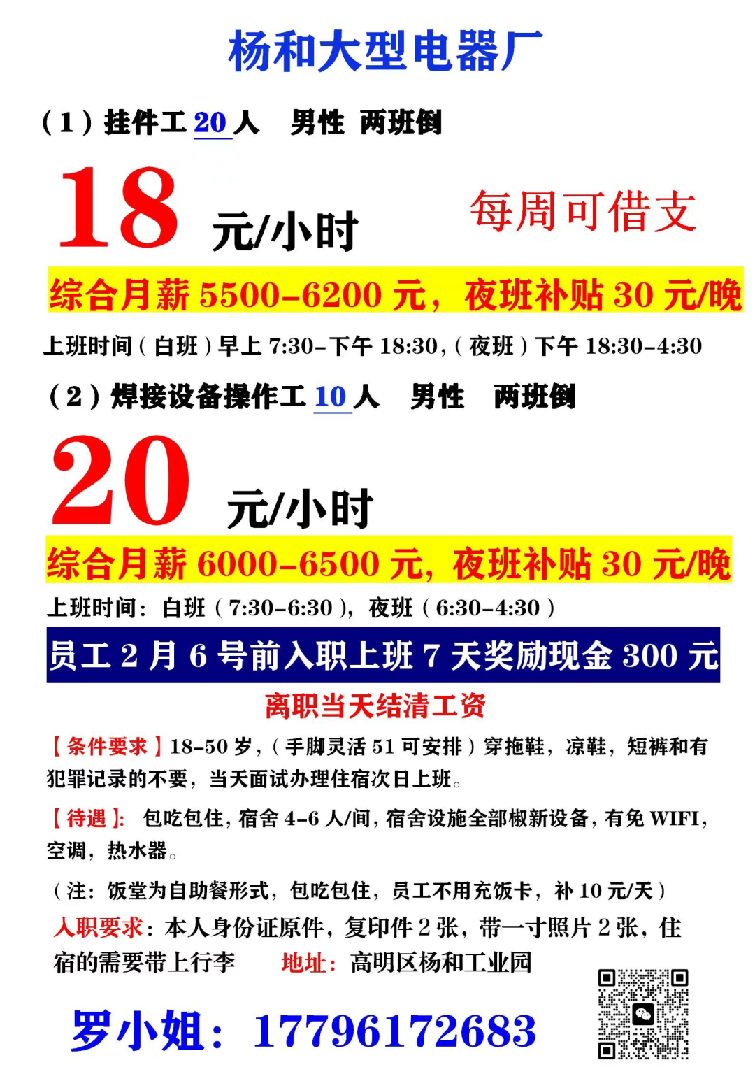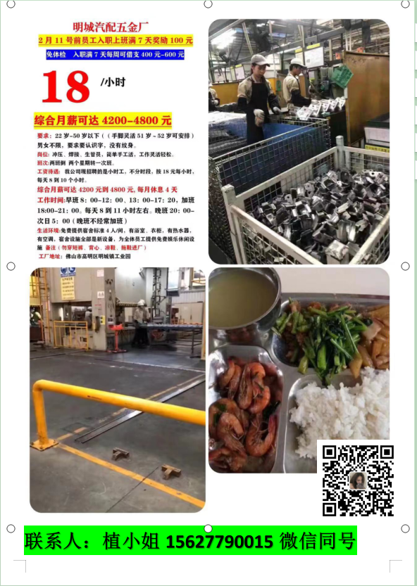 13.明城汽配厂,两班倒,按照18元每小时,包吃包住,入职满7天奖励200元