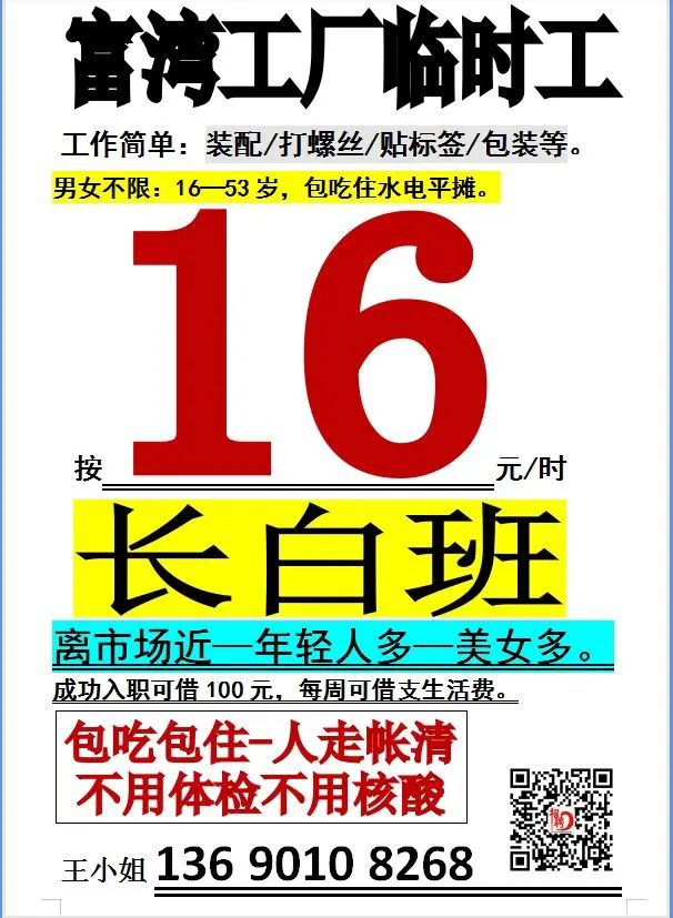 【岗位】:普工40人(打包装,贴标签,岗位有站有坐),工期3个月