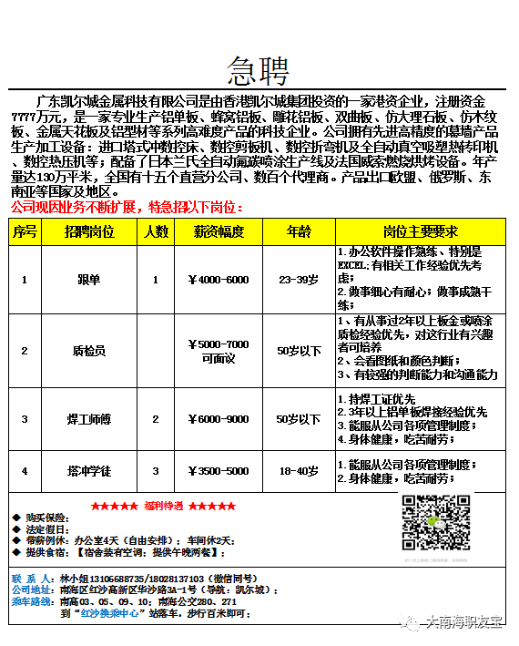 招聘热线:18928508753王先生。