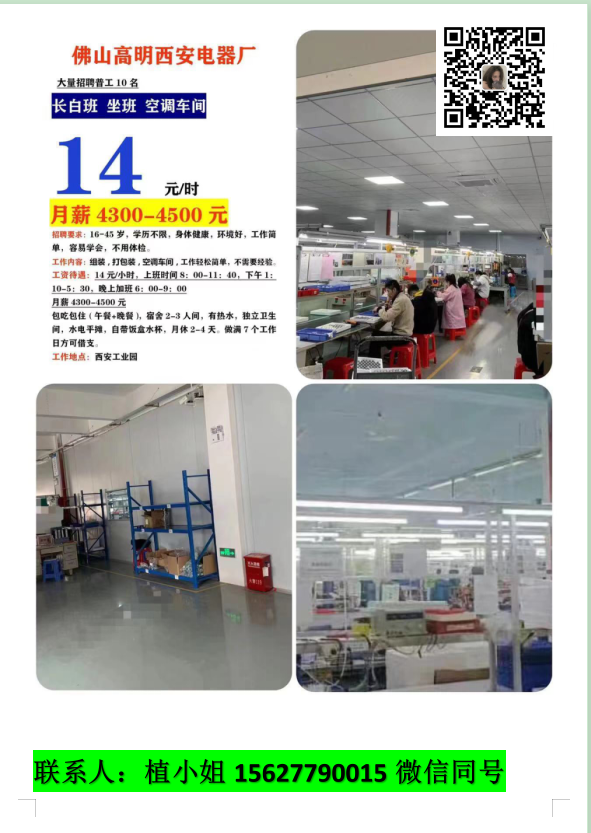 17:西安电器厂招普工15名,16元一个小时,长白班,坐班,空调车间,环境好
