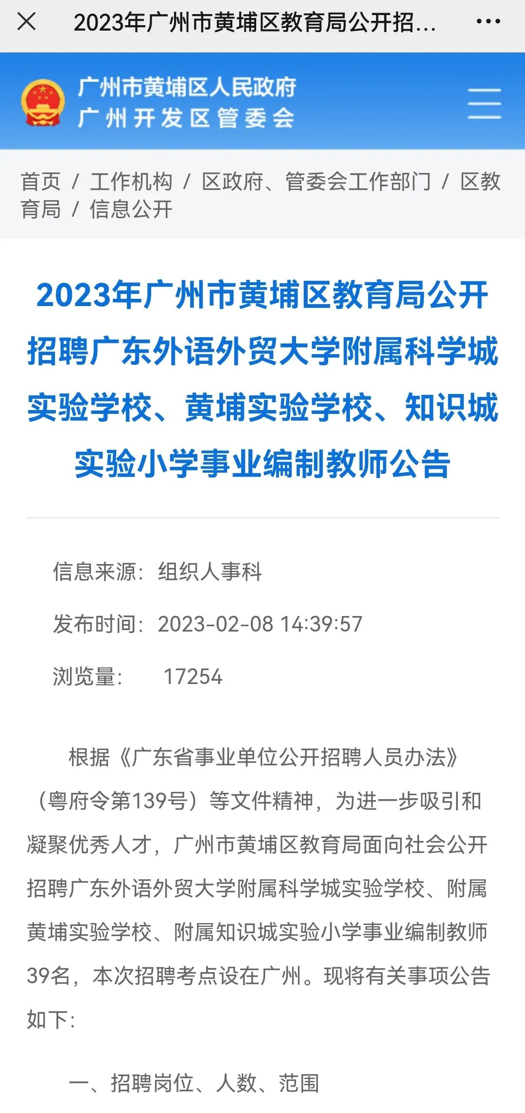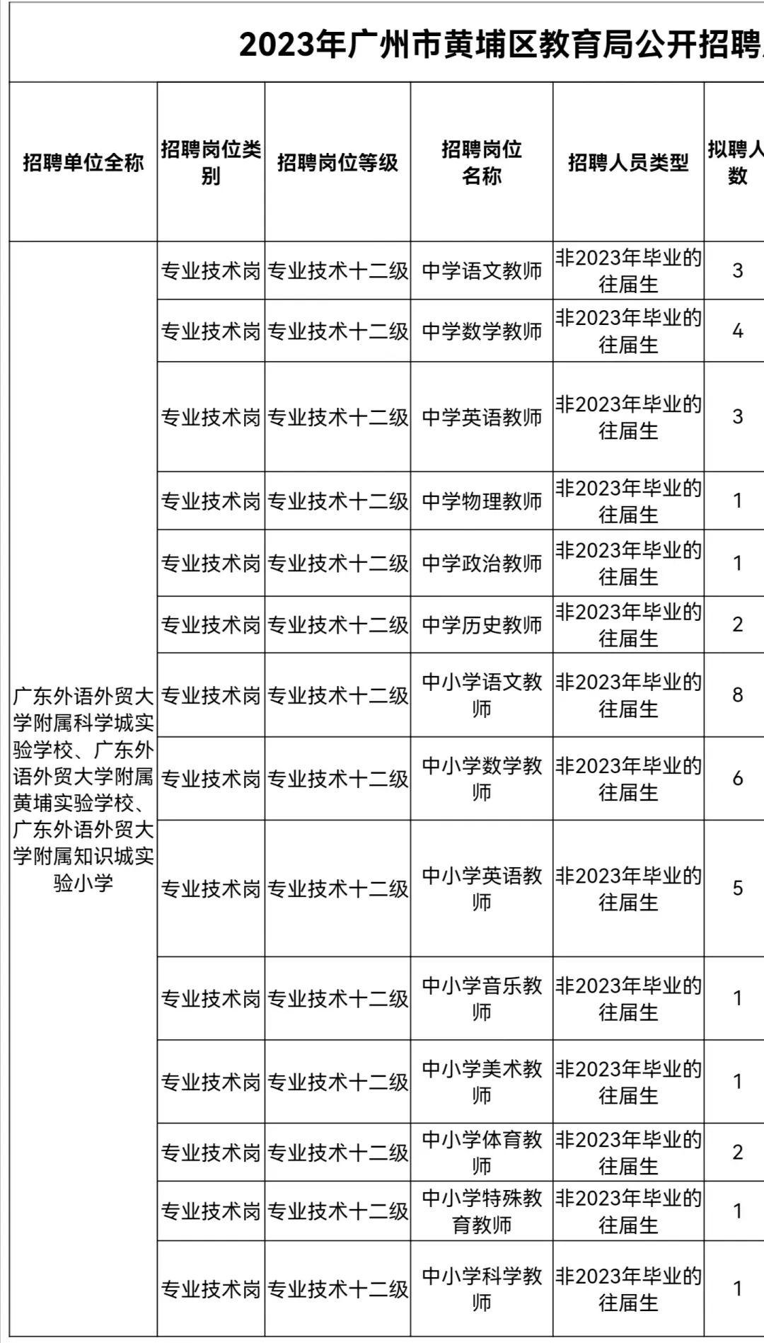 近日,黄埔区教育局公开招聘广外附教育集团三校(广东外语外贸大学附属科学城实验学校、黄埔实验学校、知识城实验小学)39名事业编制教师。