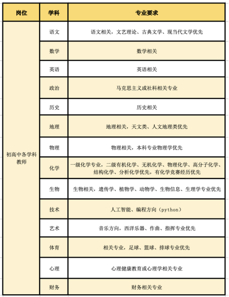 3.应届毕业生为硕士及以上学历;入职前须具备应聘学科教师资格证;中共党员、学生干部优先。