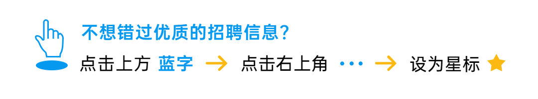 特别提示:因为公众号平台更改了推送规则,如果不想错过最新招聘信息,记得读完点一下“在看”,这样每次新文章推送才会第一时间出现在你的订阅列表里。人生总会有遗漏,但是不要忘记点“在看”!!!