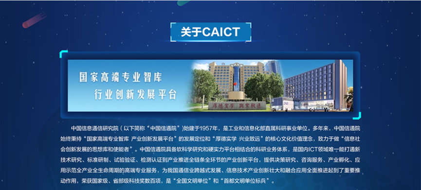 中国信通院云计算与大数据研究所(以下简称“云大所”)成立于2017年10月,是中国信息通信研究院面向互联网新技术、新产业、新模式、新业态不断发展的势态,设置的核心业务单元。云大所围绕云计算、大数据、人工智能、数据中心、智慧健康、金融科技、审计与治理、内容科技、开源与软件安全以及数字化转型等关联应用领域开展技术、标准研究,构建相关技术的测试、试验和统计平台,承担相关服务和产品的测试评估工作,承担国家重大科技项目、产业化项目,提供相关技术标准的咨询服务。