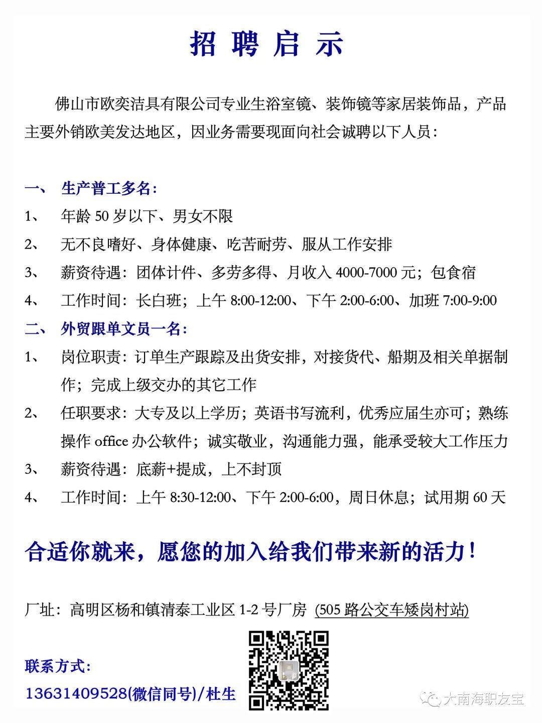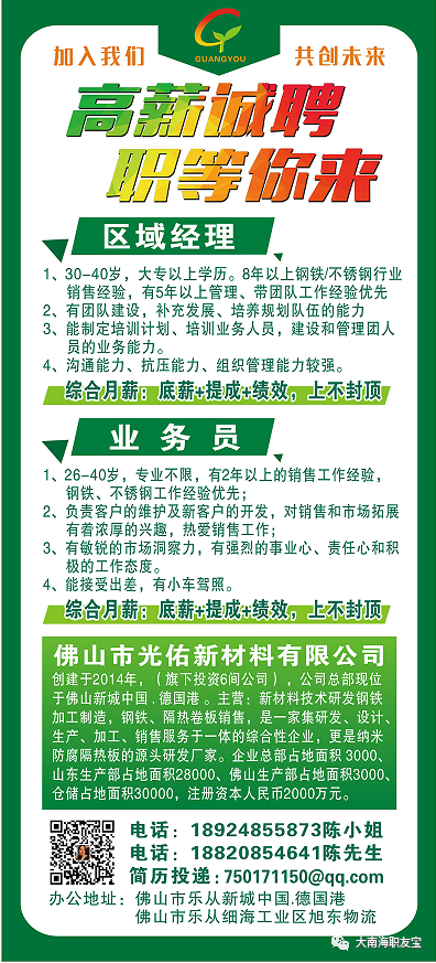 佛山本地万人+求职招聘平台!免费发布招聘、求职/信息。