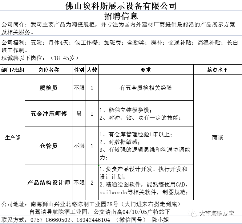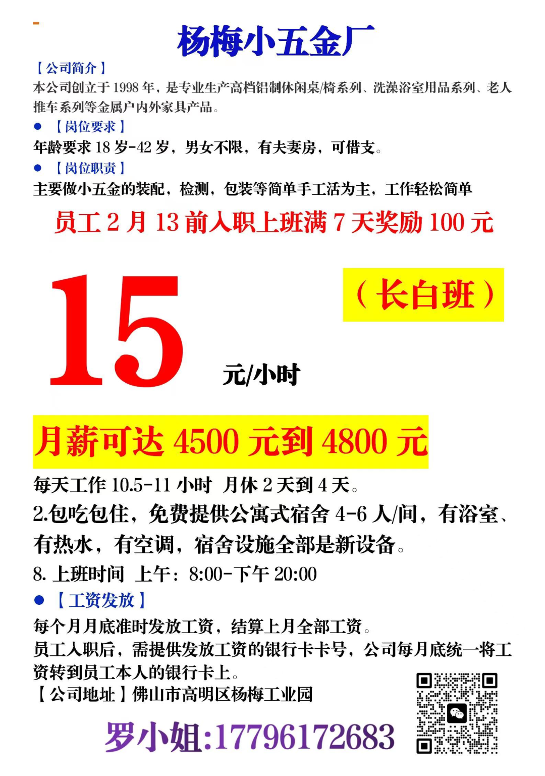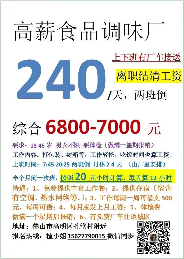 上班地址:南海区西樵大同(龙高路高明大桥往九江方向6公里,原金永恒头盔厂旧址)