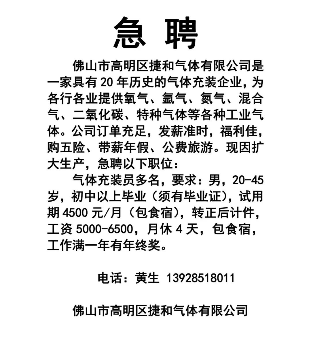 3、认真细心,吃苦耐劳,服从管理安排,执行力强,无不良嗜好。