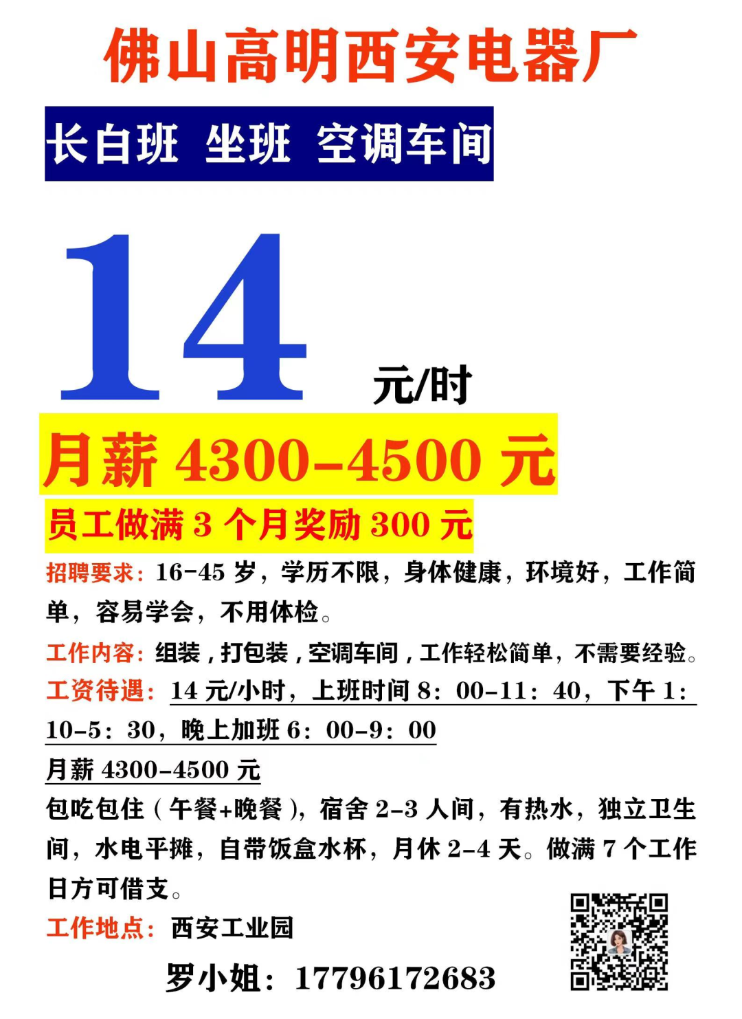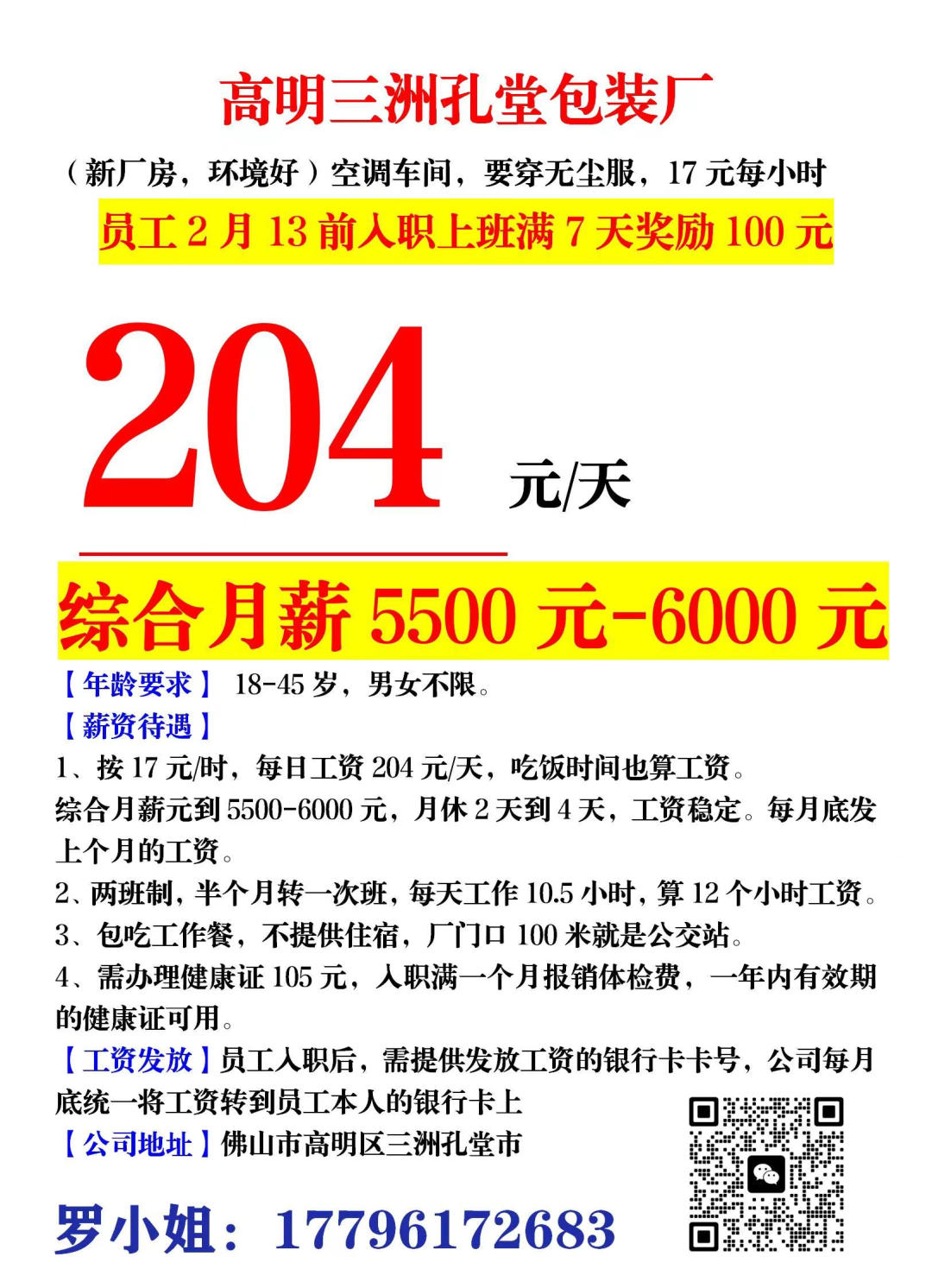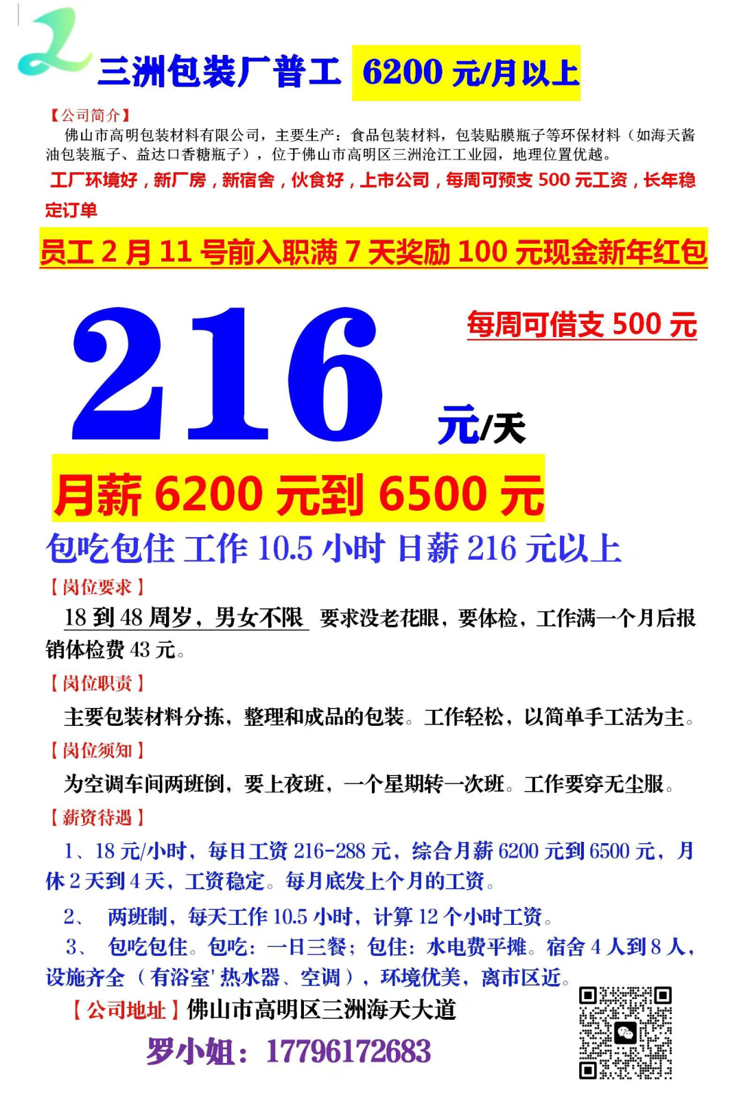 1、,多劳多得,综合薪资 6000-9000; 2、当月超出国家法定出勤日的超出日按双倍计件结算; 3、(餐补元 300/月),提供住宿(外宿补贴 220/月),夜班补贴25元/天,高温补贴300元/月,宿舍 4-6人间,品牌空调、热水器、洗衣机标配宿舍; 4、入职次月购买佛山当地五险一金; 5、每月 10 号发放上月工资,公司可统一办工资卡; 6、上下班车接送,节假日福利,员工关怀(夏季凉茶,高温补贴、节日礼包等); 7、入职前我司提供免费体检; 8、一年四次晋升机会,提供内部培训。