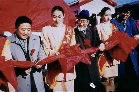 王洛宾(左三)为《达坂城的姑娘》雕像落成剪彩