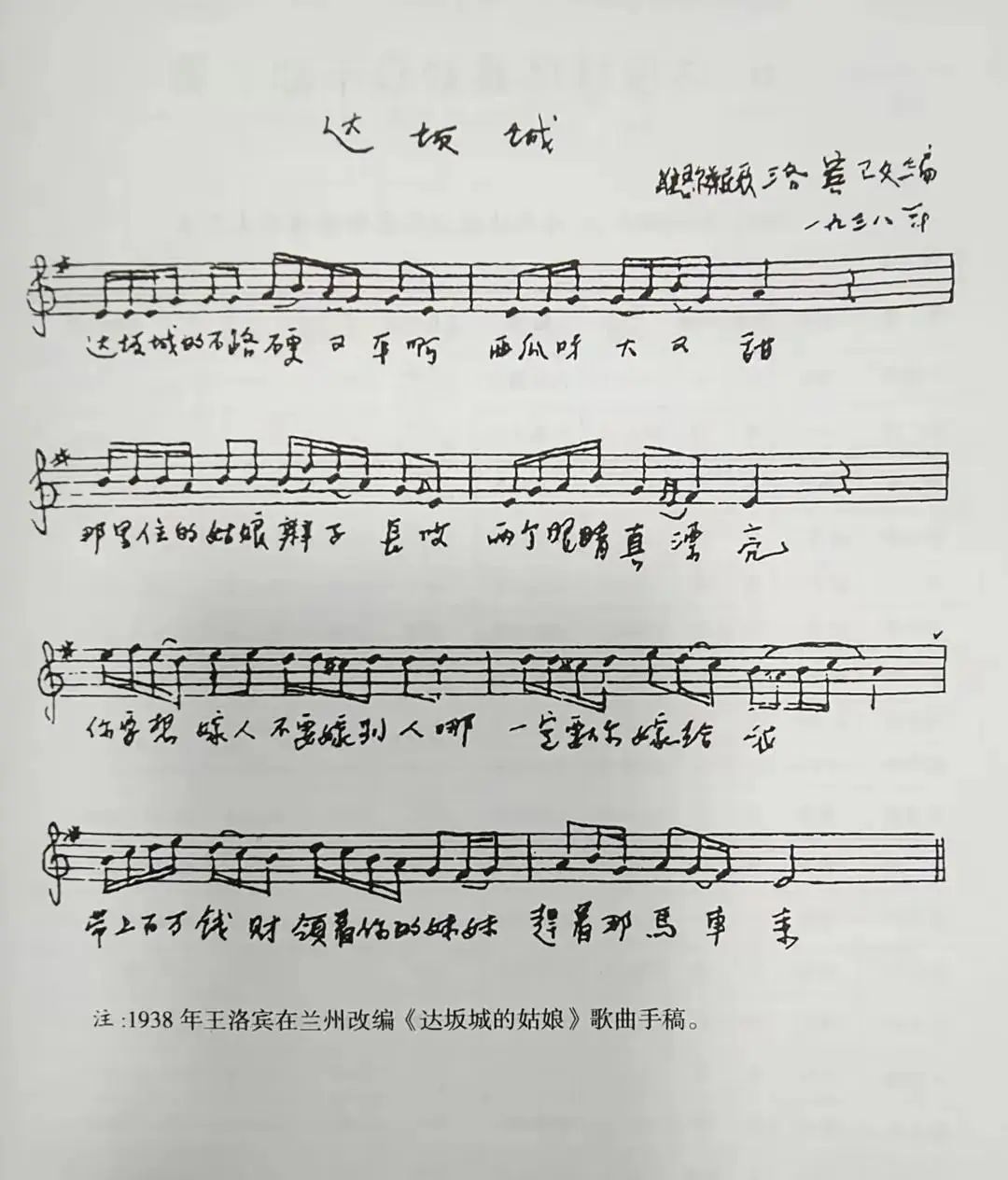 王洛宾的《达坂城的姑娘》手稿(1938年)
