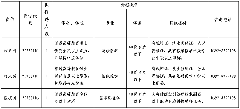 医护招聘温馨提示:河南省鹤壁市人民医院,2023年招聘急诊医师、重症医学科医师、肿瘤放射物理师等3人,报名截止至2023年2月21日。欢迎人才加入我院!