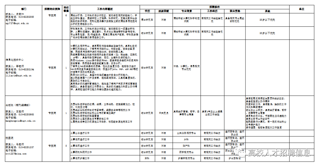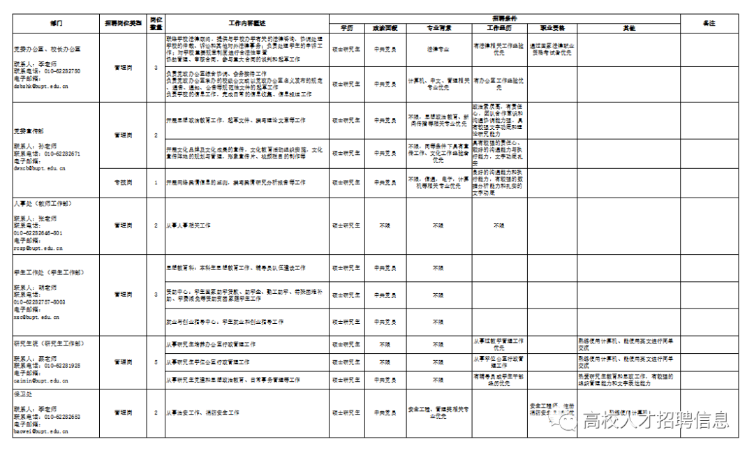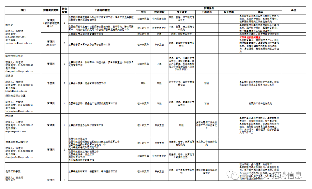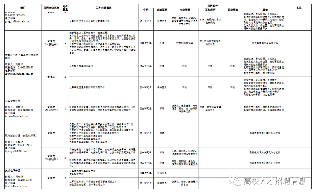 >招聘77人 !北京邮电大学2023年度校聘人员招聘启事
