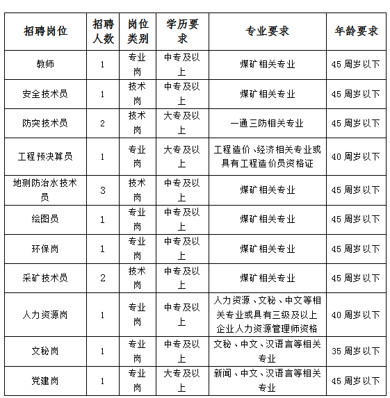 江西煤业集团有限责任公司尚庄煤矿为国有企业,隶属于安源煤业集团股份有限公司全资子公司(江西煤业集团有限责任公司)。尚庄煤矿1958年设计建井,1968年10月投产,核定生产能力 40万吨/年。因工作需要,现拟面向社会公开招聘员工15人,现将招聘有关事项公告如下: