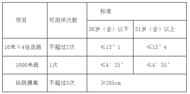 考生须严格遵守《体能测评项目实施规则》(附件2)有关规定,由本人独立、逐项完成各项测评,3个测评项目全部达标的,视为体能测评合格。考生参加体能测评前,须确保本人身体状况良好,因身体健康原因出现意外由本人承担后果。对本人或他人的体能测评结果有异议的,应在本测评项目测评情况发生的当场向体能测评组织单位提出申诉或举报,组织单位应当场受理,逾期不再处理。