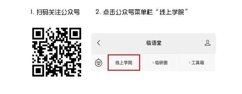 点击“临语堂”公众号菜单栏“线上学院”开始学习。