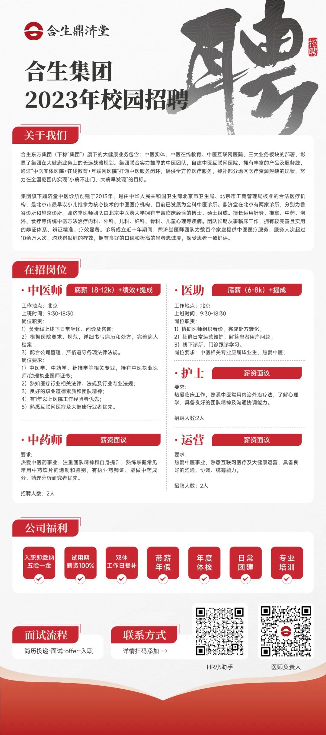在此,合生鼎济堂决定扩充团队,招贤纳士。如果你希望与我们并肩前行,为中医事业、全民生命质量的提升贡献一份自己的力量,欢迎加入我们的行列!