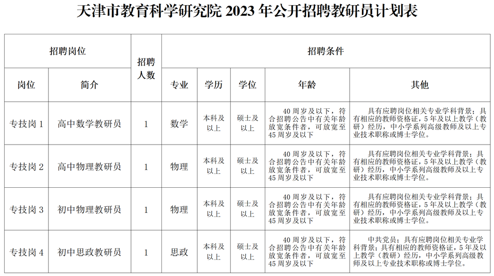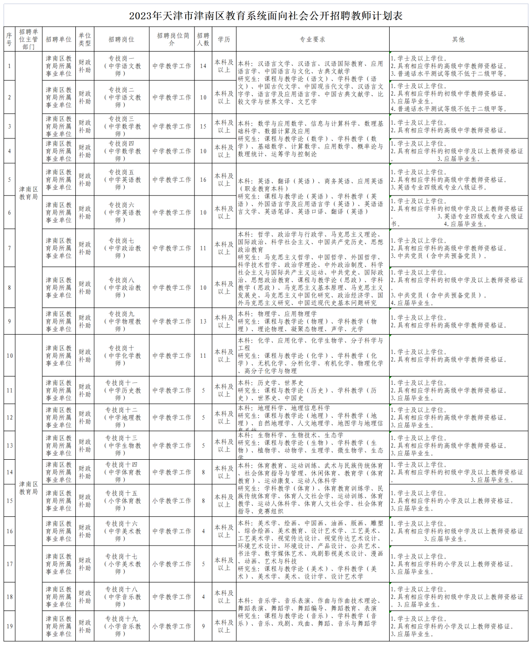 应聘者2月16日可登陆天津市教育科学研究院网站(http://tjjky.tj.edu.cn)查询相关招聘信息。本方案发布7个工作日后接受报名,报名时间不少于5天。招聘时间为全年招聘。