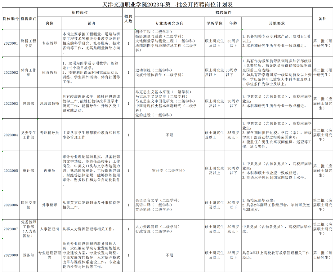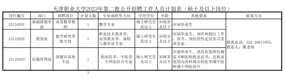天津职业大学2023年第二批公开招聘工作人员方案(硕士及以下岗位)