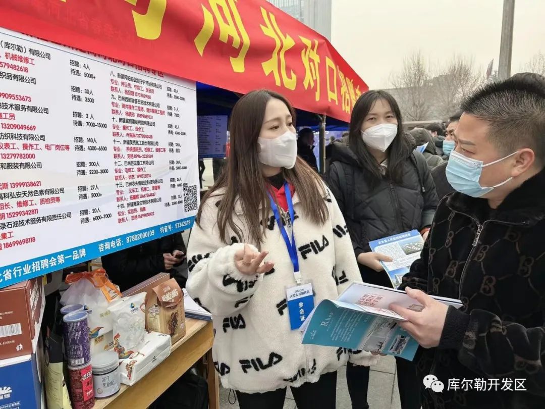2月18日,河北省春季大型人才招聘会在河北省艺术中心如约举办,此次招聘会由河北省人才服务中心主办,并设置了新疆巴州定向河北招聘专区,开发区共提供就业岗位近千个,含盖新疆中泰集团所属各子公司、新疆乌苏啤酒(库尔勒)有限公司、新疆聚恒石油技术服务有限公司、新疆坤森纺织品有限公司等企业。现场吸引数百人次前来咨询,共收到意向简历数十余份,两地就强化“点对点”开展招聘,探索企业用工合作方式、提升劳务组织化程度、提供精准就业服务进行交流座谈。开发区社会发展局干部与河北轨道运输职业技术学院对接,积极推介国家级库尔勒经济技术开发区,动员学生积极投身于西部建设,并认真宣讲了“扬帆园区”政策、“5111”人才政策,帮助企业招才引智,希望通过宣讲的方式能够吸引河北省大中专院校毕业生前往巴州库尔勒经济技术开发区就业生活。春风送岗位,服务助发展。今年以来,库尔勒经济技术开发区适应市场需求,创新“送”“招”“帮”结合的服务模式,多渠道促进招聘务工供需对接,促进农民工、高校毕业生、就业困难人员等重点群体实现就业,让“春风行动”成为助民、惠企、富民的春风。