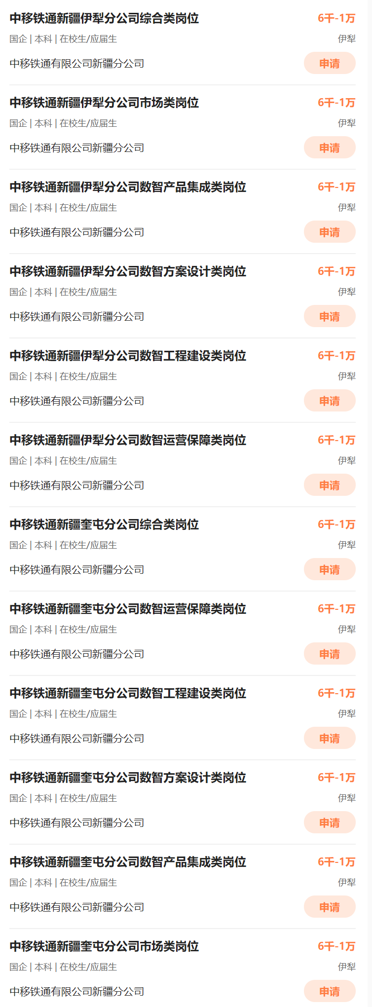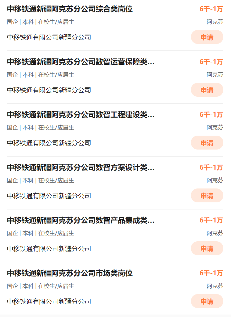 学历要水:全日制大学本科及以上学历(和田地区、喀什地区、克州、阿克苏地区可放宽到全日制专科)