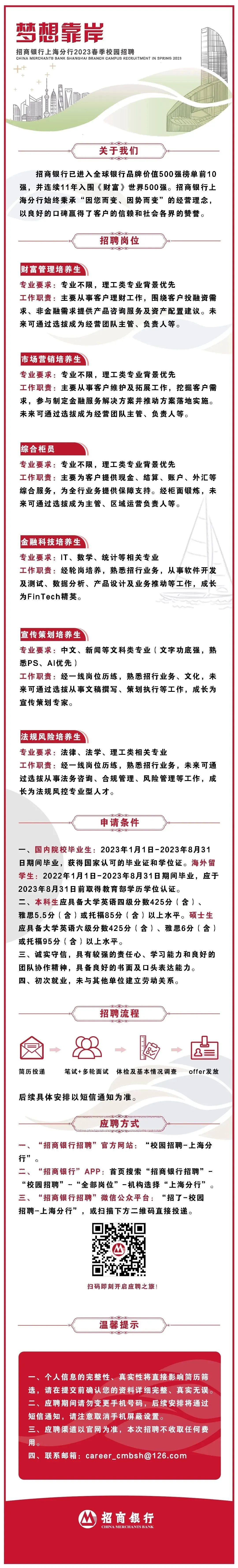 【校园招聘】招商银行上海分行2023春季校园招聘