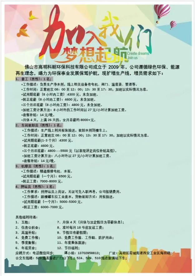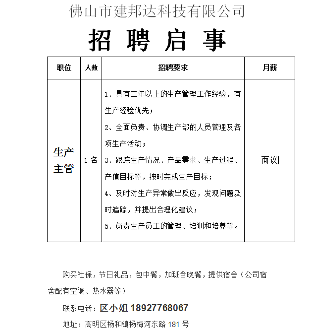 七、装配工 数名(薪酬:4.5-7K以上/月)