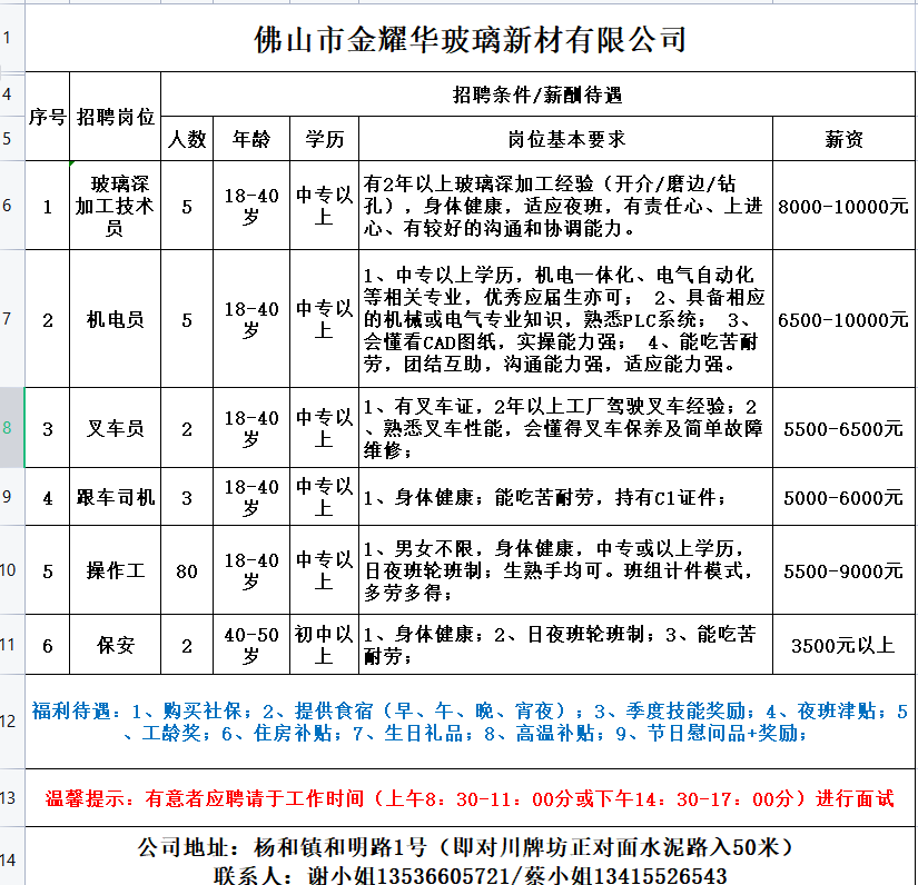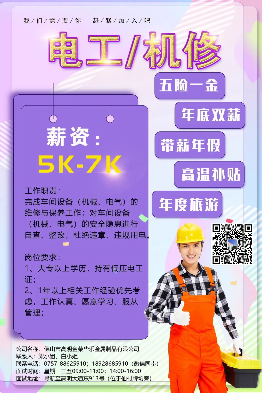 九、打磨工 数名(薪酬:4-5.5K以上/月)