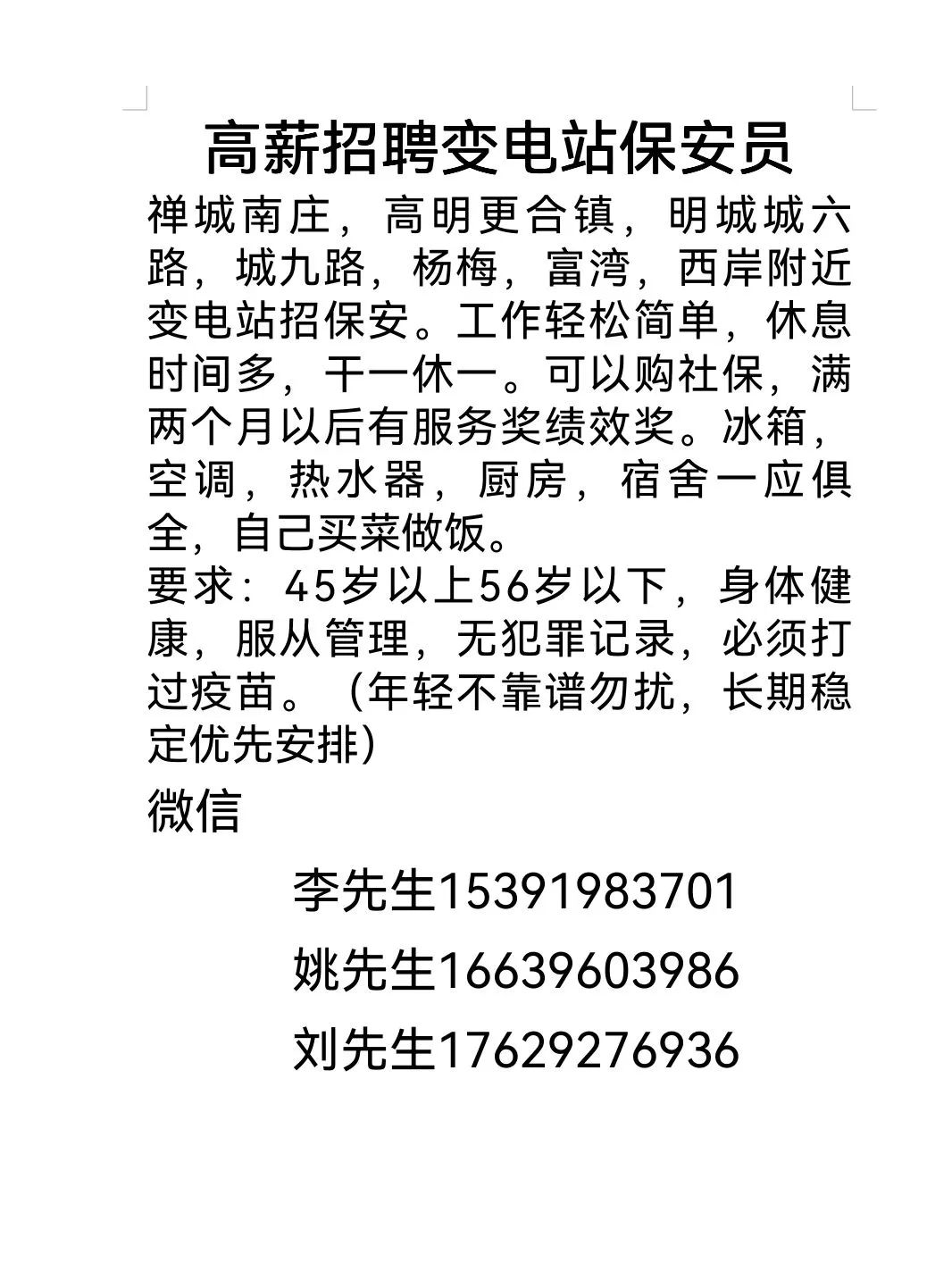 3、熟悉保安业务,善于思想政治工作,具备一定的组织管理能力,会带队伍,从事过安保管理工作或复员退伍军人优先;