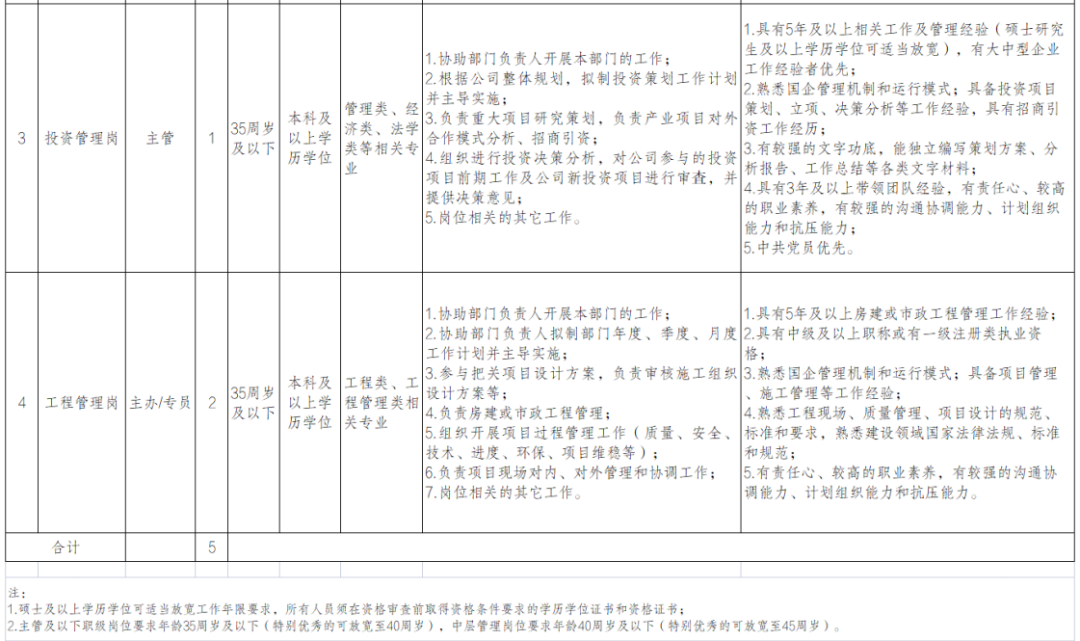 本次招聘遵循公开、平等、竞争、择优的原则,面向社会重点引进产业发展、工程建设版块方面专业人才,共计5名。
