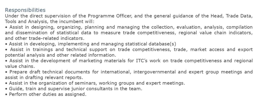 工作部门:国际贸易中心(联合国/世界贸易组织)