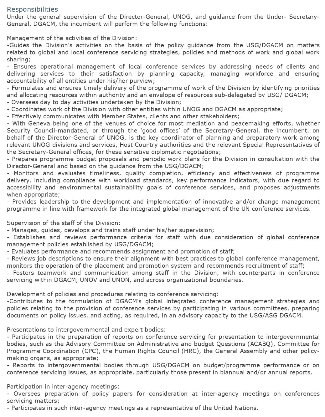 工作部门:联合国日内瓦办事处