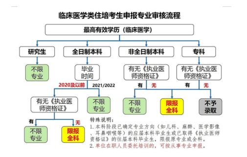 2.本科专业已限定专业方向的本科毕业生(如麻醉学、放射、超声医学等),申报专业限定为原本科专业或全科医学科。