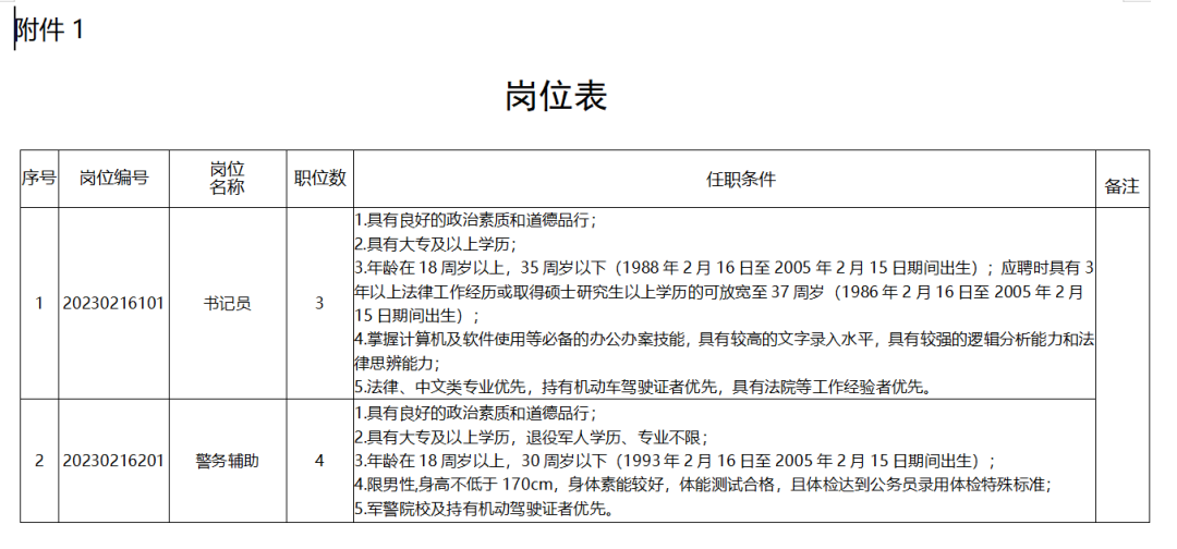 附件1:岗位表