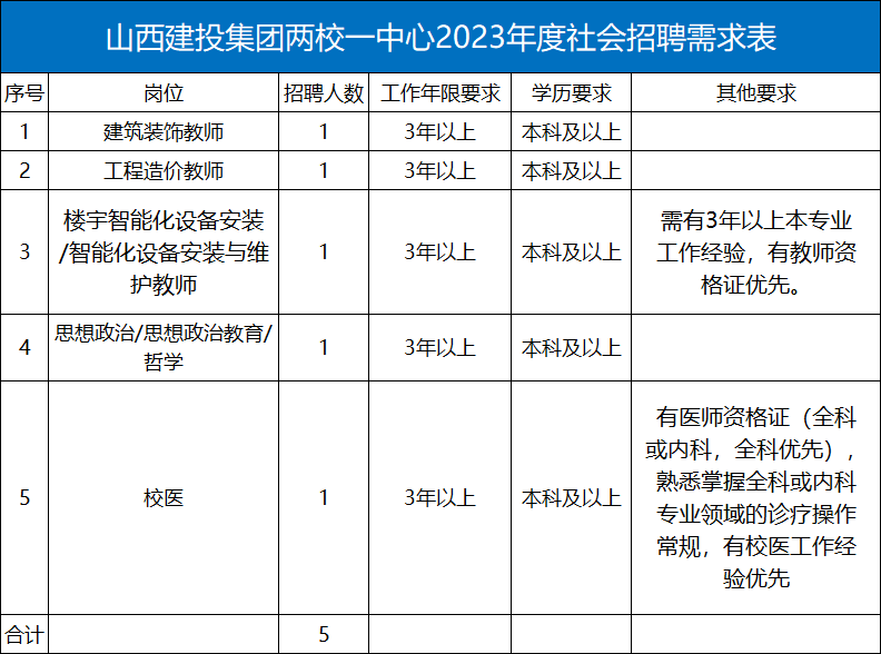 2.招聘公告发布在山西建设投资集团有限公司官网;山西省建筑安装技工学校官网、微信公众号等媒体。