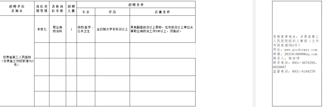 甘肃省第三人民医院2023年公开招聘医疗卫生类高层次专业技术人员1名