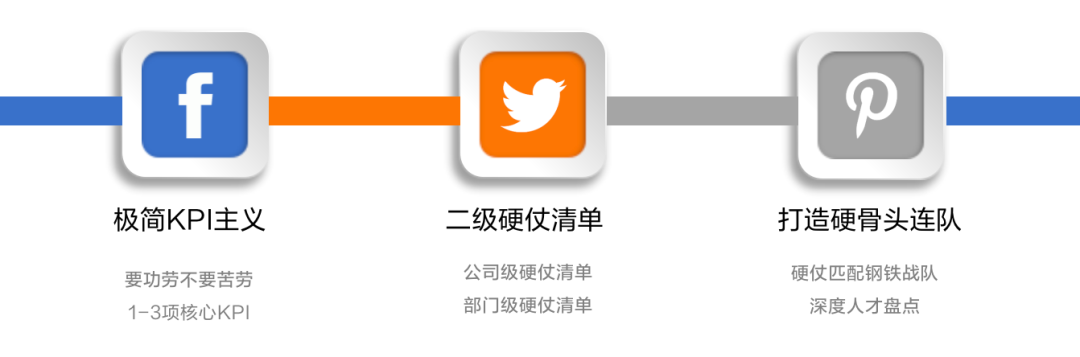 一共分为三个动作,极简KPI主义、二级硬仗清单、打造硬骨头连队。