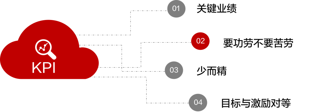 KPI的第一个核心就是关键业绩,围绕着关键来做,要功劳不要苦劳,并且要简和精,这也就是我们所说的“极简KPI”主义,并且目标与激励对等。