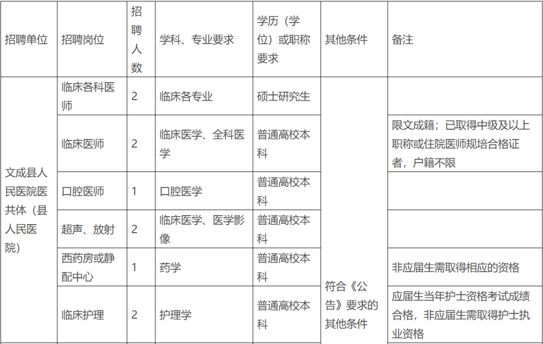 联系电话:文成县人民医院医共体人事科0577-67823512,