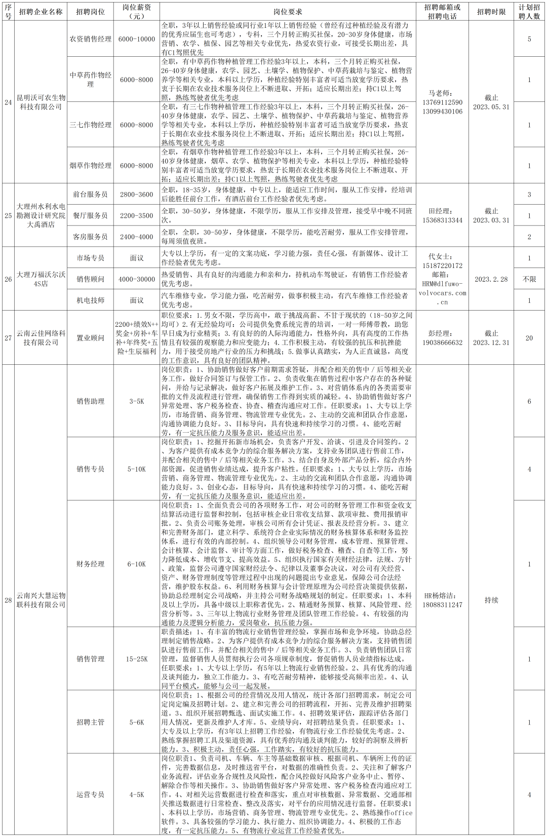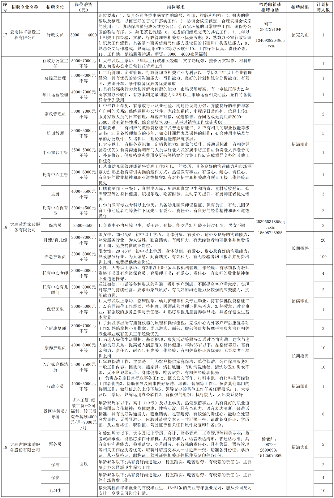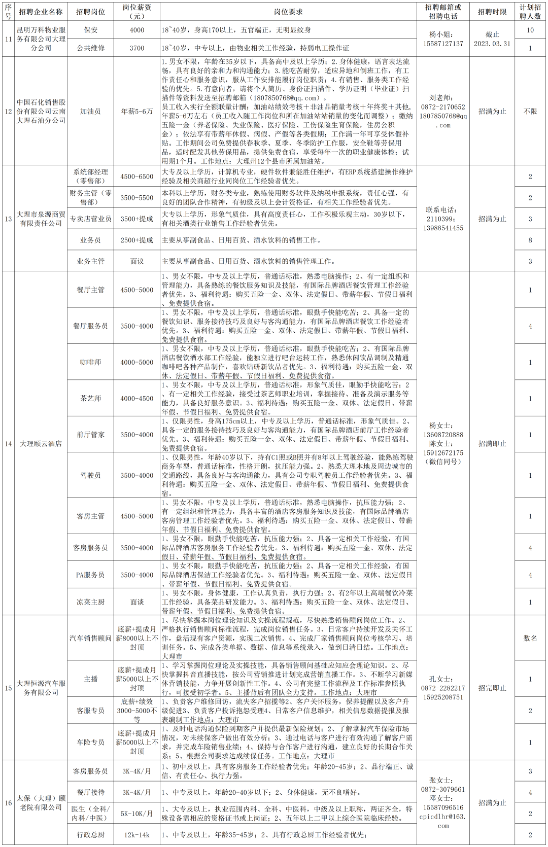 工作地点祥云 .大理 .丽江 .保山 .瑞丽 .芒市。联系电话:15912570532 /18108824306。以上人员须吃苦耐劳者优先.【非诚勿扰】