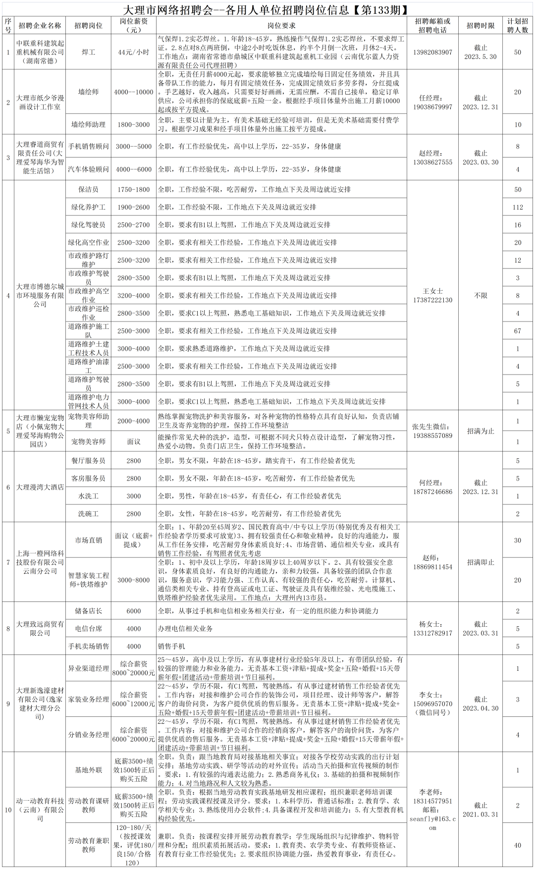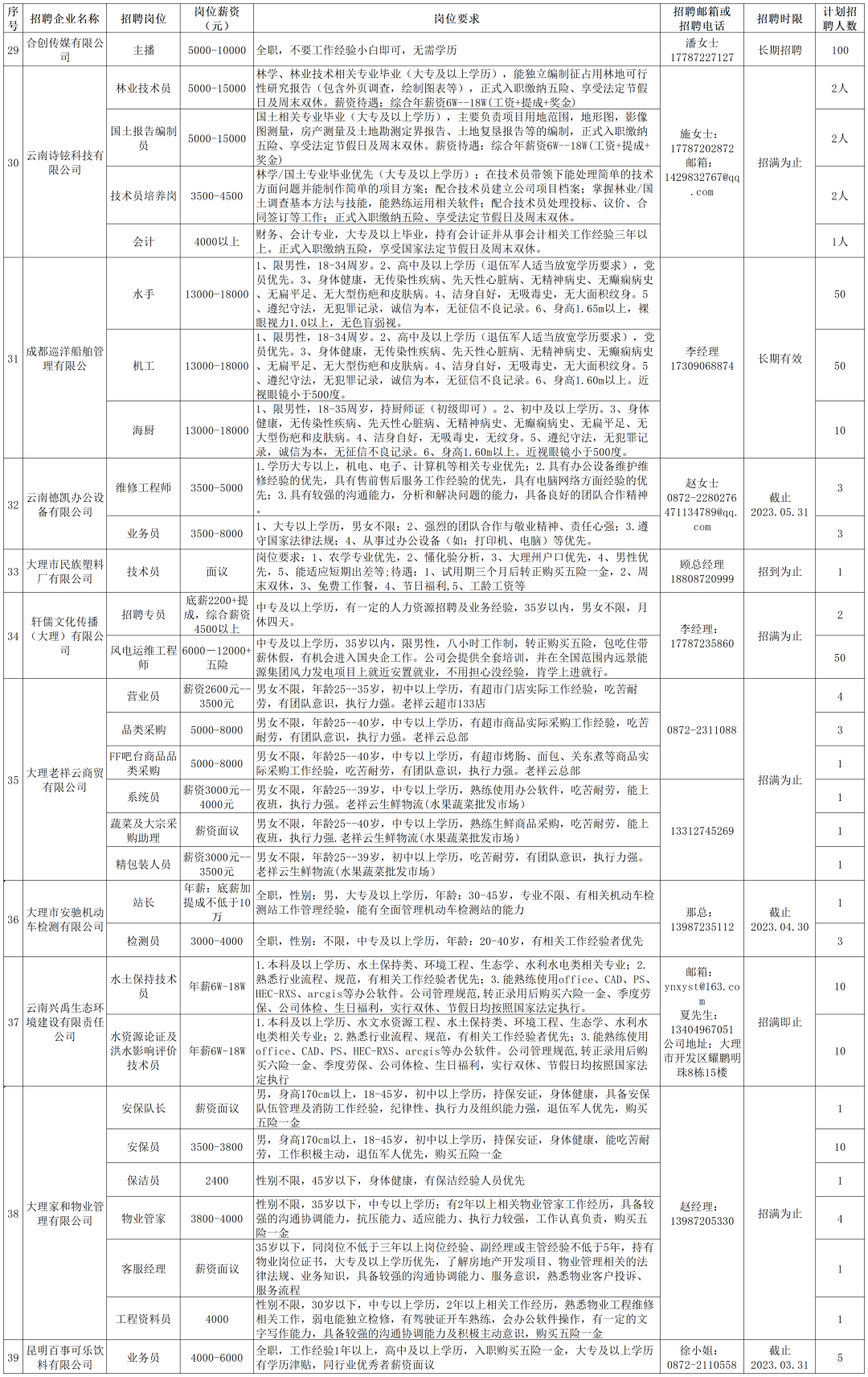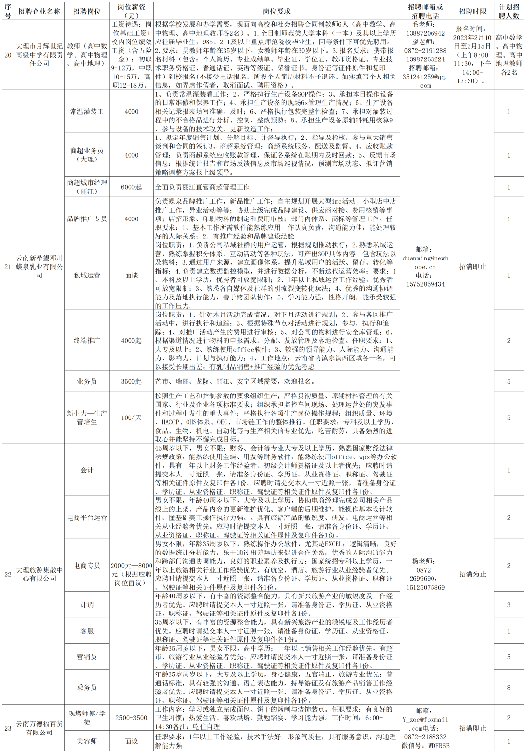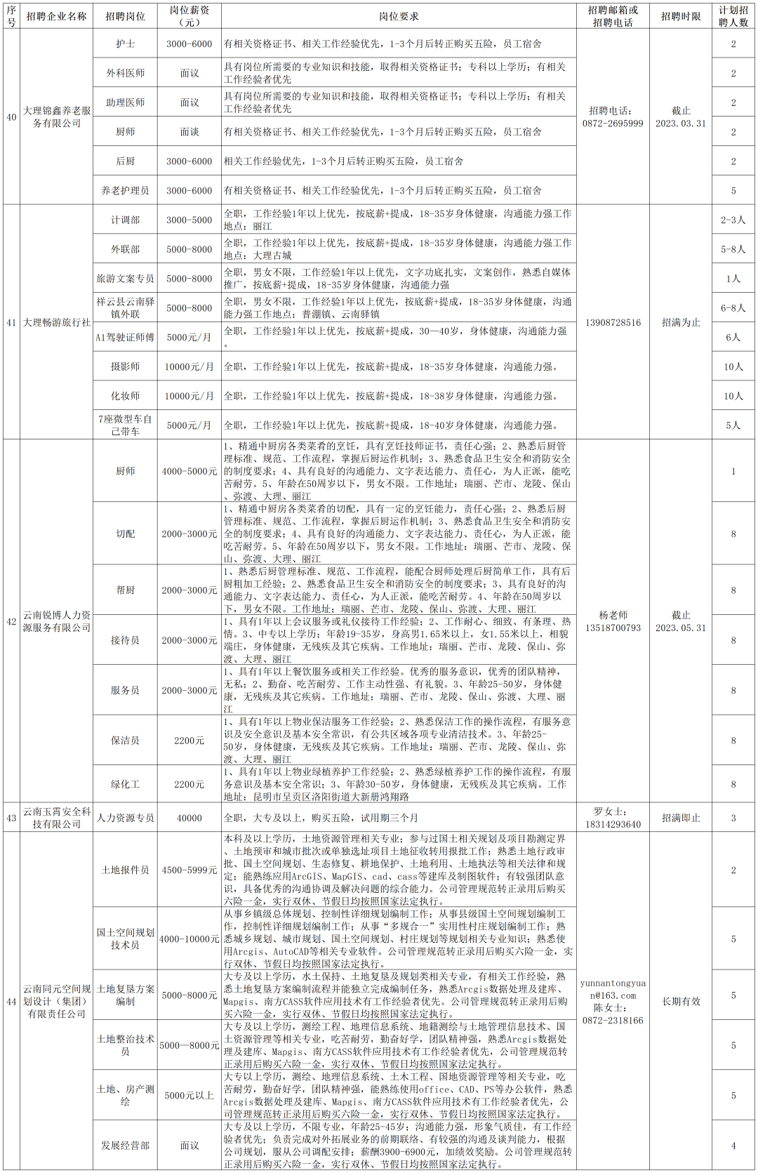 工作地点祥云 .大理 .丽江 .保山 .瑞丽 .芒市。联系电话:15912570532 /18108824306。以上人员须吃苦耐劳者优先.【非诚勿扰】