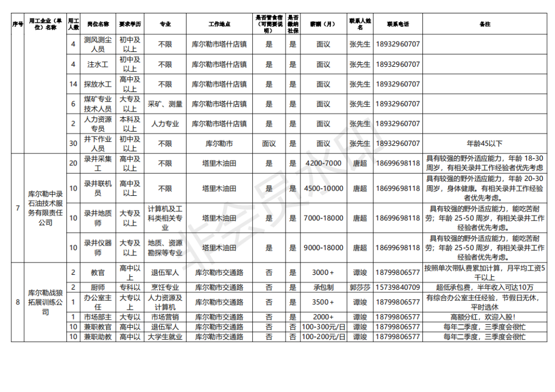 (长按二维码查看详情)天然气操作工,保管员,小型物资搬运工