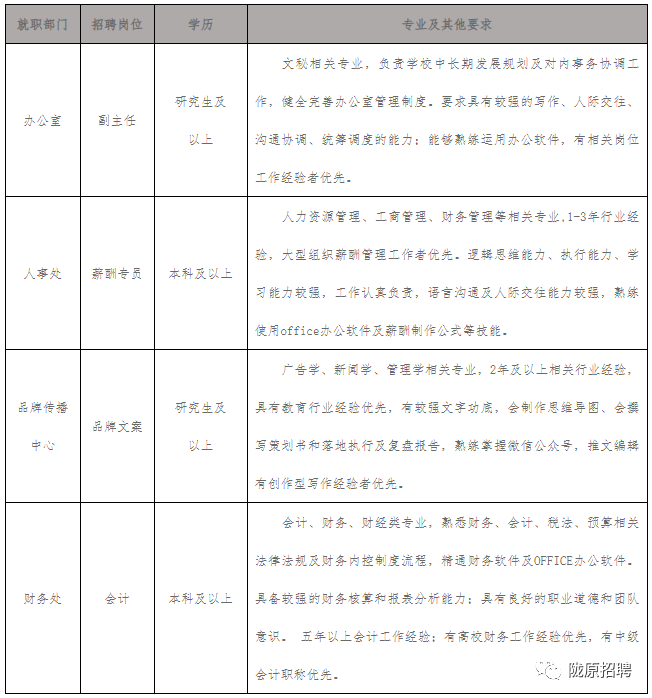 3.招聘岗位要求年龄原则上在35周岁及以下,博士或副高级及以上职称可适当放宽年龄条件。