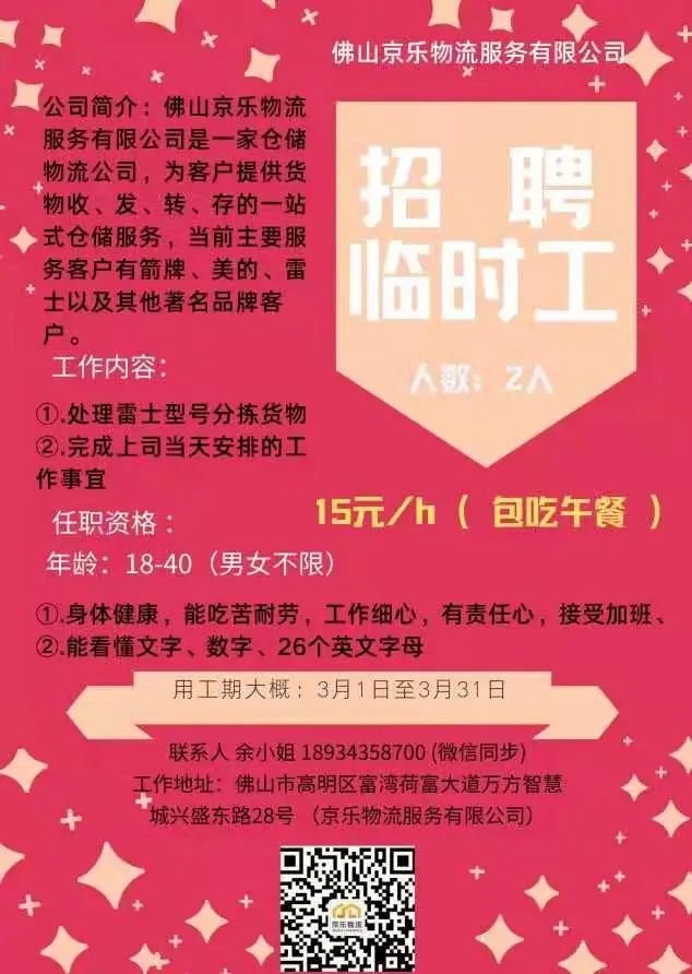 4、仓管员2名:中职或高中以上文化;薪资4000-4500元/月,试用期一个月。