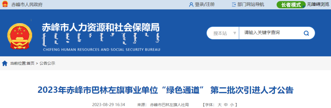 为拓宽人才引进渠道,推进人才强旗战略,助力巴林左旗经济社会高质量发展,根据《内蒙古自治区事业单位公开招聘人员办法》(内人社发〔2022〕2号)《赤峰市人才引进若干政策(试行)》(赤党发〔2021〕16号)和《巴林左旗机关事业单位“绿色通道”引进人才实施办法(试行)》等有关规定,现将巴林左旗2023年事业单位“绿色通道”第二批次引进急需紧缺高层次人才工作有关事宜公告如下: