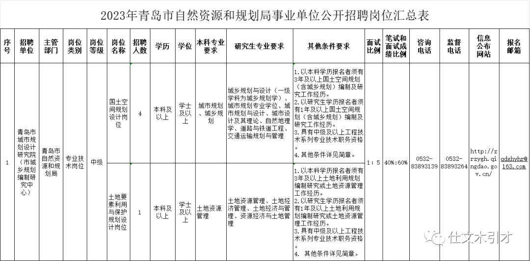 笔试结束后将在青岛市自然资源和规划局官网公布笔试成绩及面试人员名单。笔试时间、地点另行通知。